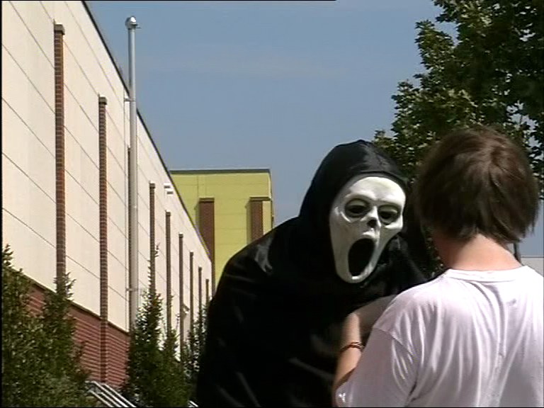 Wir drehten diese Szene an einem ruhigen Ort. Wir hatten Angst, daß sch Spaziergänger zu Tode erschrecken.